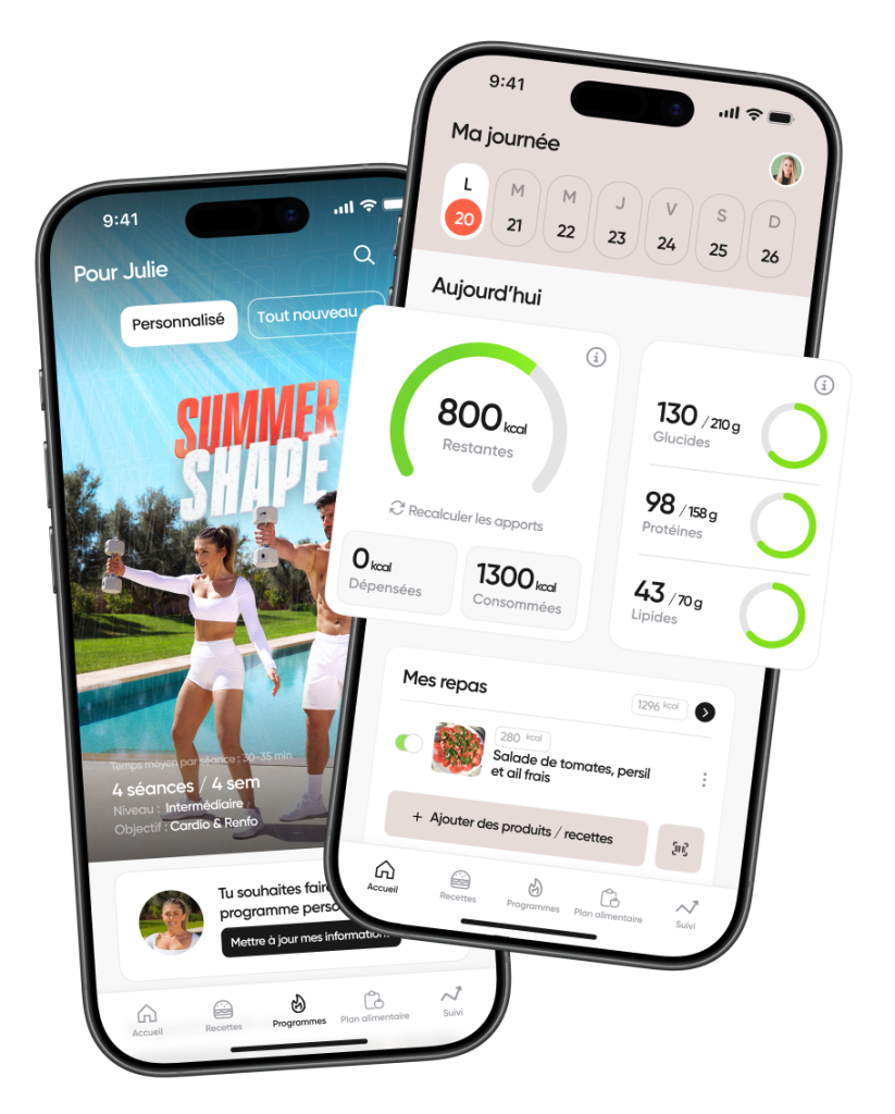 Ajoute tes recettes pour avoir un plan alimentaire ajusté avec tes calories mises à jour.