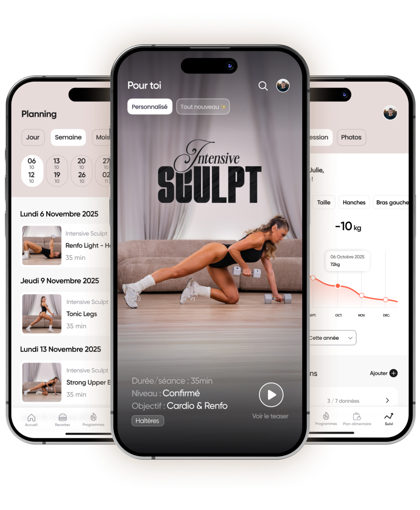 Tu souhaites repousser tes limites ? Lance-toi dans l’Intensive Sculpt, le programme qui combine la puissance du renfo avec l’intensité du cardio, pour une transformation rapide et des résultats visibles depuis chez toi !