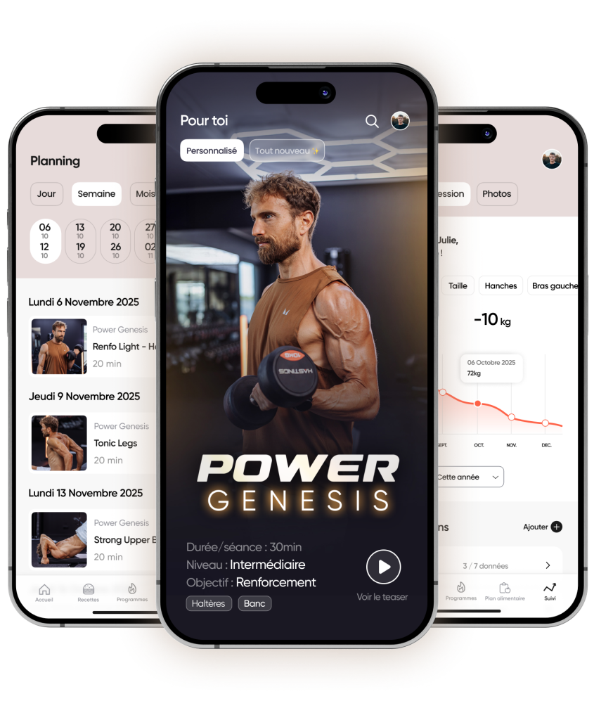Avec Power Genesis, j’ai créé un programme puissant et sans impact, pensé pour les sportifs intermédiaires qui veulent dépasser leurs limites. Chaque séance optimise la prise de muscle, la performance et la posture, dans une ambiance intense, motivante et sûre pour les articulations.