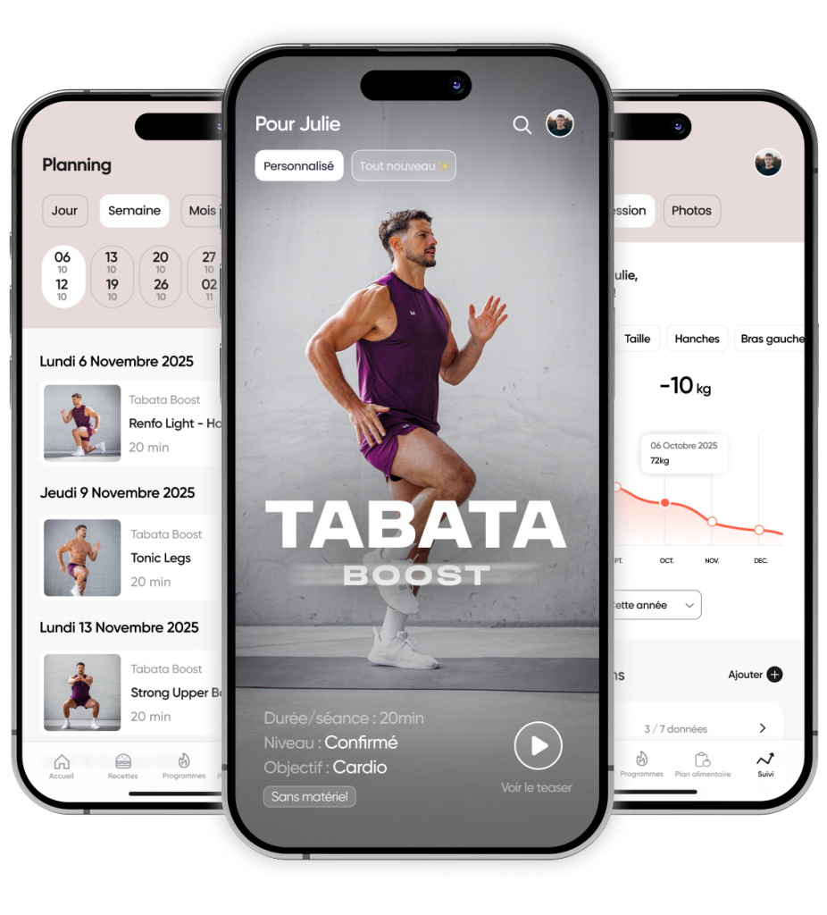 Le Tabata Boost est fait pour toi. Pensé pour les amateurs de HIIT, booste ton cardio sans passer des heures à t’entrainer et améliore toi, ta force, ton endurance et ta puissance grâce à des séances courtes mais ultra ciblées depuis chez toi !